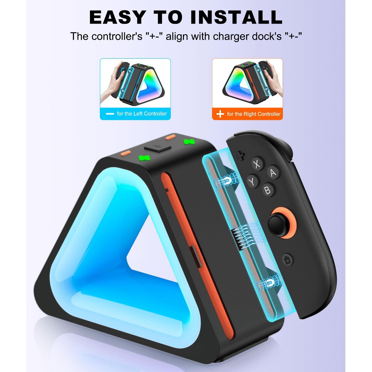 High-Volume Keywords: Switch 2 4 controller charging station, Mulcolor LED Joy-Con dock, magnetic mount charging base