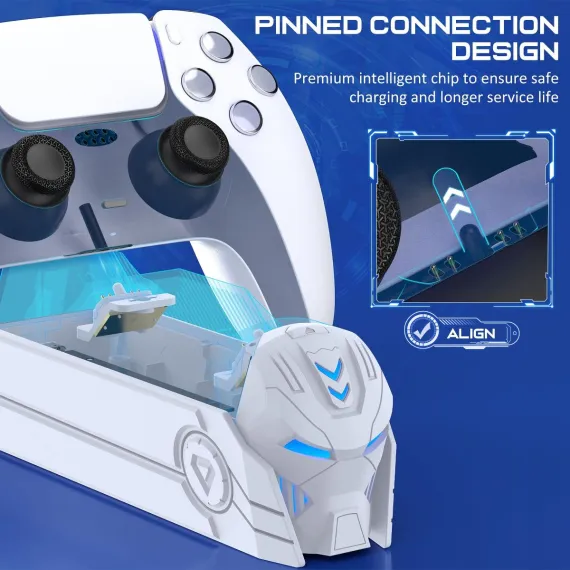 Beboncool PS5 Controller Charger 2.5Hr Fast Charge & Space Saving Design White