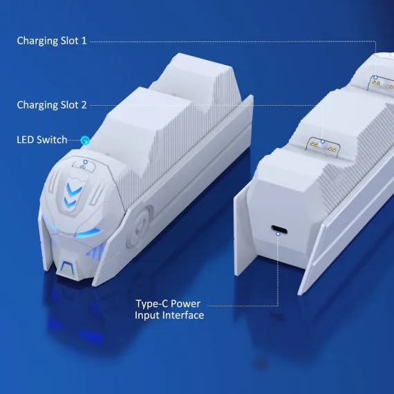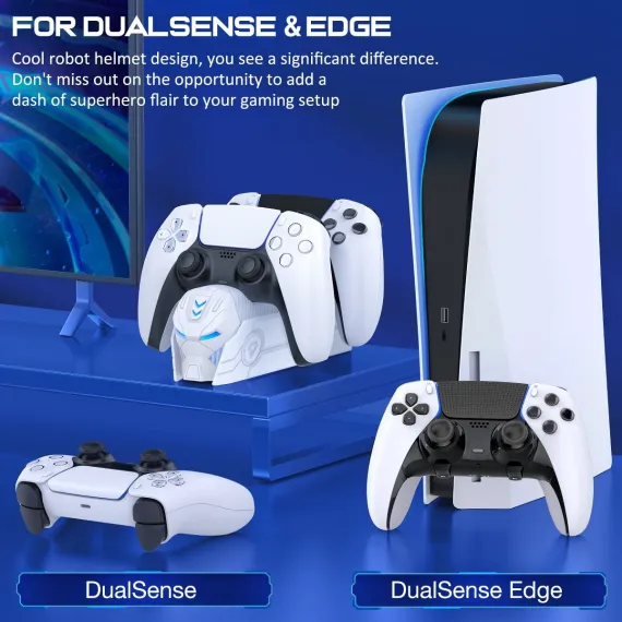 Elevate your PlayStation 5 gaming experience with the Beboncool PS5 Controller Charger. This sleek, white charging station features an Iron-Man inspired design and LED lights, allowing you to create a personalized gaming atmosphere. Charge two controllers simultaneously in just 2.5 hours, compatible with PS5 DualSense and Edge Wireless Controllers. Enjoy uninterrupted gameplay with this convenient and stylish charging solution, designed to keep your controllers powered and ready for action.