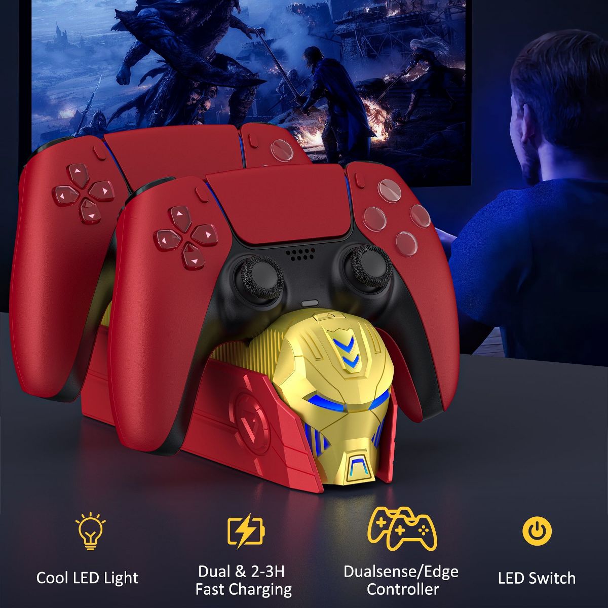 Level up your PS5 setup: This all-in-one dock eliminates cable clutter while delivering Sony-certified rapid charging. The matte-finish base securely holds two controllers, showing real-time status through dual LED indicators (red=charging/blue=complete). Its 39-inch reinforced cable reaches from consoles to gaming desk, perfect for battle stations needing both organization and fast power recovery.