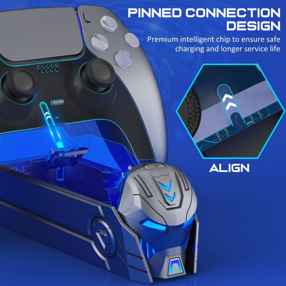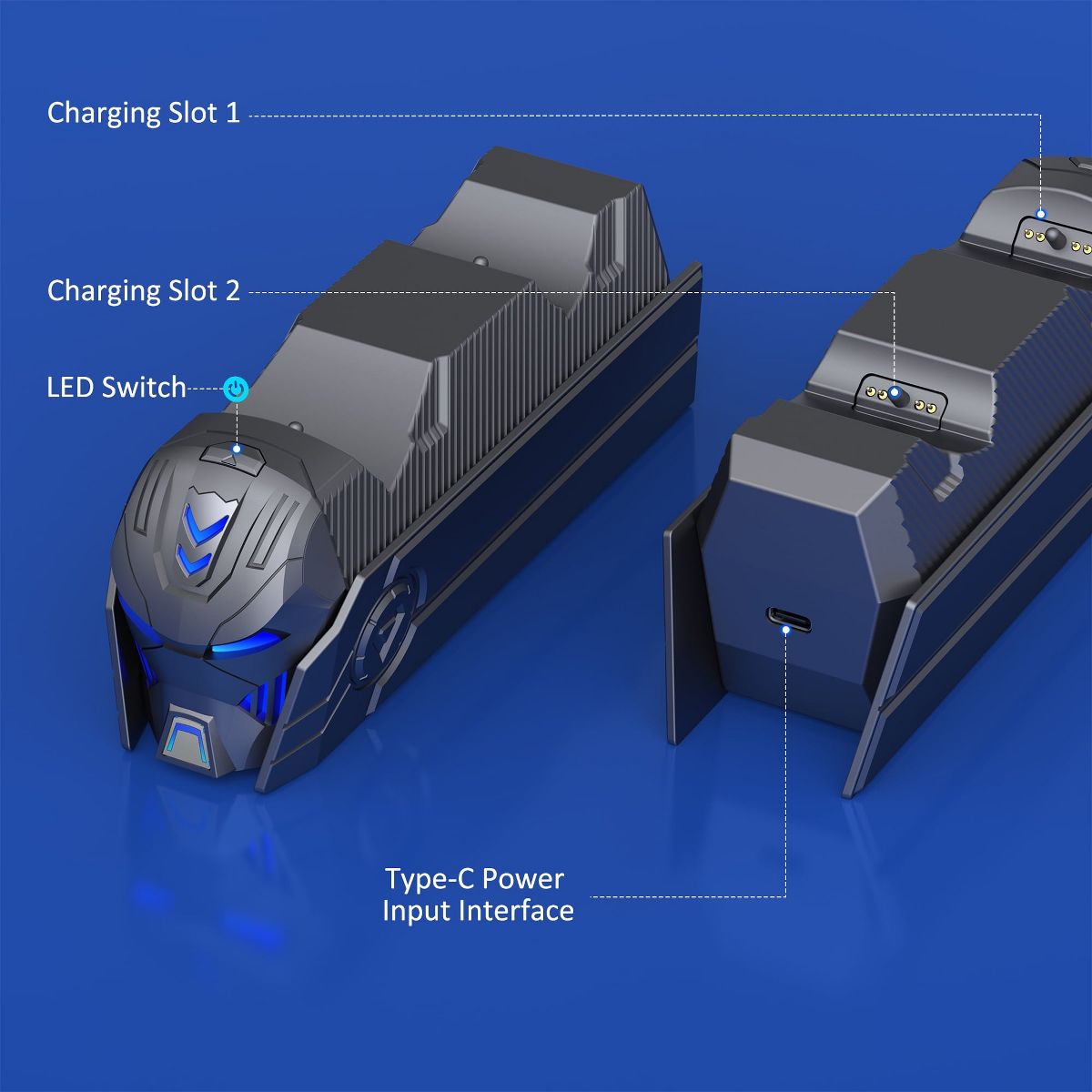 The Beboncool PS5 Controller Charging Station offers a convenient and efficient way to keep your PlayStation 5 controllers powered up. This sleek and compact accessory rapidly charges two DualSense controllers simultaneously in just 3 hours, providing up to 10 hours of gameplay. Equipped with LED indicators and an upgraded smart chip, it ensures safe and reliable charging, protecting your controllers from common issues like short circuits and overcharging. Designed to save space on your gaming setup, this versatile station doubles as both a charging hub and controller storage, Which making it an ideal companion for PlayStation 5 enthusiasts.