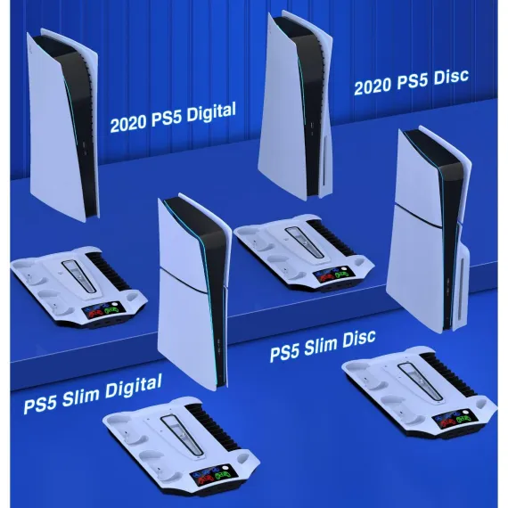 This beboncool ps5 cooler stand took into consideration both ps5 console digital edition as ps5 console disc version, also comes with a special digital strip for the slim ps5 digital console and a safety SCREW to attach to the ps5 console system, both will make the docking station more secure and balanced,compact size help to save space & increase gaming room’s space efficiency.