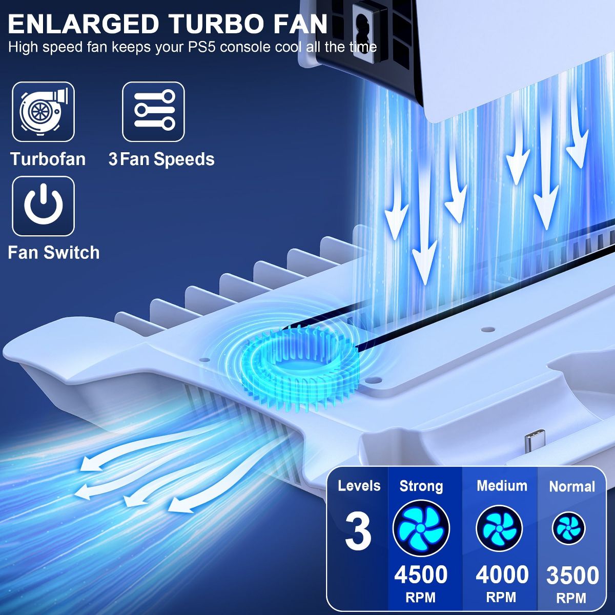 Beboncool PS5 Cooling Fan Stand with Dual Controller Charger Station for PS5 & Pro & Slim White Model 1