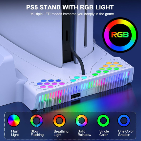 Beboncool PS5/PS5 Silm Cooling Stand with Dual Controller Charger Station White