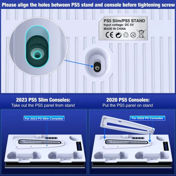 Beboncool PS5 /PS5 Silm/Pro Cooling Fan Stand with Dual Controller Charger Station,White