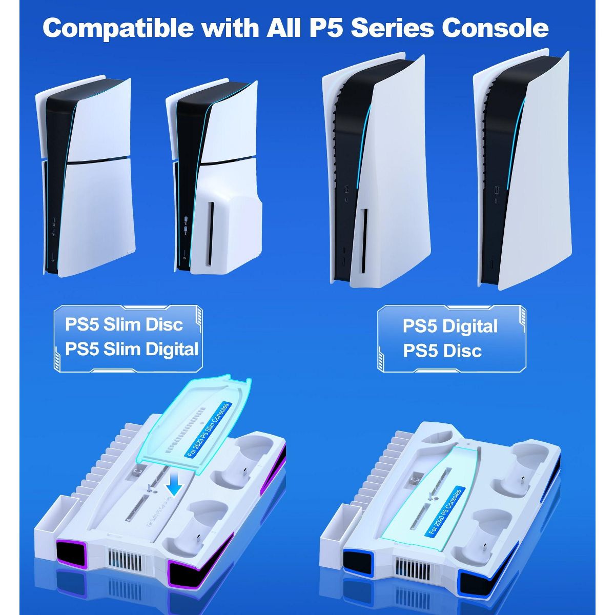 Beboncool PS5 Silm Stand with Cooling Fan for 2020 Playstation 5 Disc Digital Console PS5 Silm White