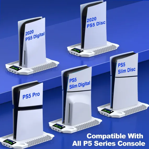 PS5 COOLING FAN STAND & CHARGER STATION – Enhanced Cooling, Fast Charging, and Space-Saving Design