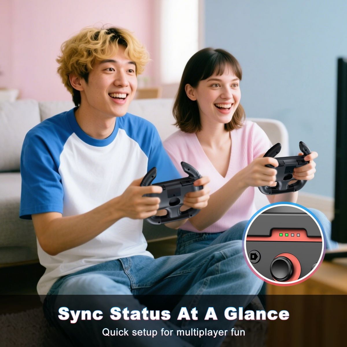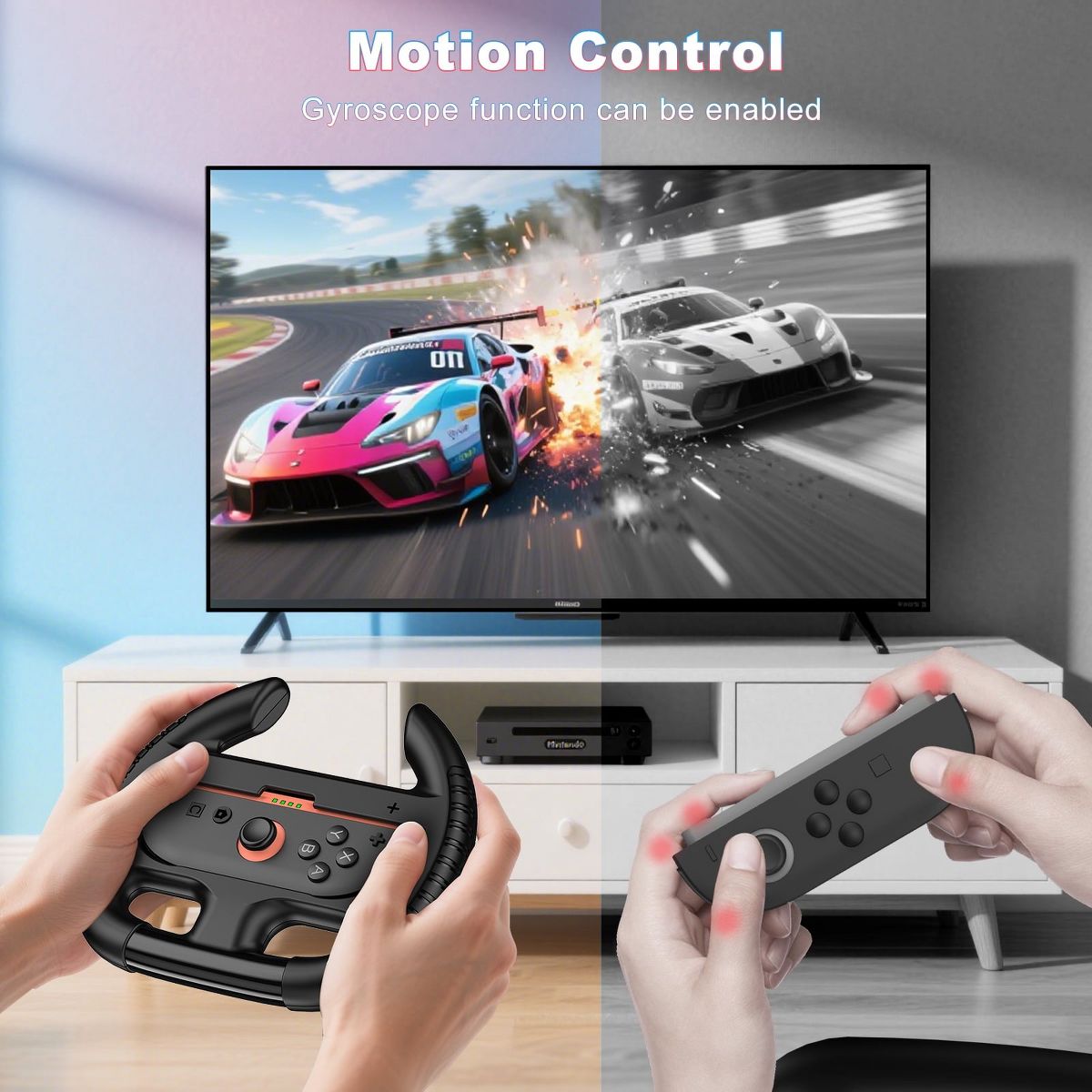 Elevate your Nintendo Switch 2 gaming experience with this Beboncool steering wheel, designed for ultimate immersion in games like Mario Kart 8 Deluxe. Engineered to fit Switch 2 Joy-Cons, this ergonomic steering wheel features LED sync status lights to quickly identify player numbers and connectivity, perfect for multiplayer races. Enjoy enhanced control with enlarged SL/SR keys and a realistic driving simulation, mimicking the feel of professional racing. The ergonomic design fits larger hands comfortably, while its easy click-in/click-out slots ensure hassle-free Joy-Con installation/removal. With gyroscope tilt control compatibility, tilt the wheel to steer intuitively, and the classic orange-blue color scheme matches your Switch 2’s aesthetics. Perfect for racing enthusiasts—upgrade your gameplay with this waterproof, durable Switch 2 accessory!
