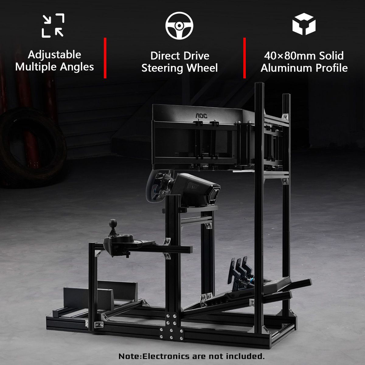 Dardoo 4080 Aluminum F1 Sim Rig with Integrated Triple Monitor Stand for an Immersive Experience.Excluding electronic devices.