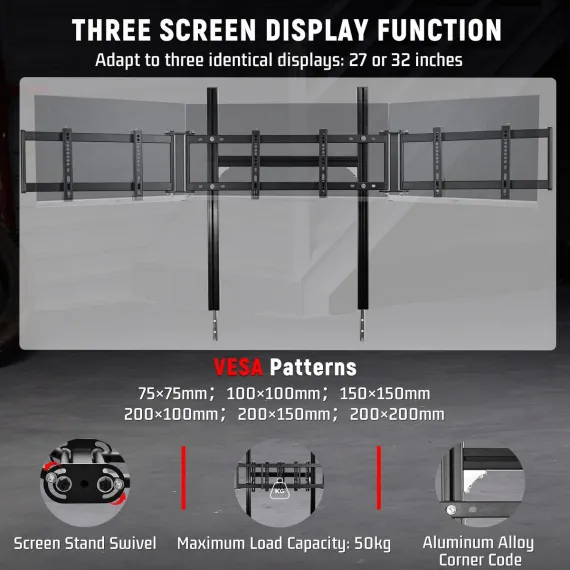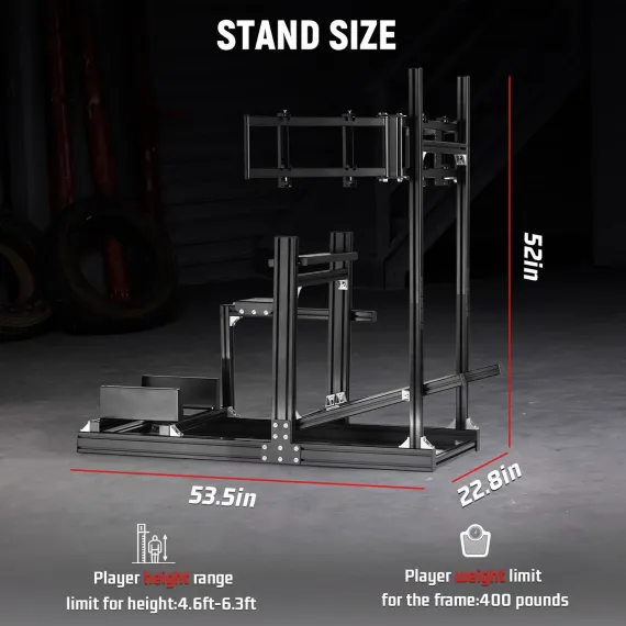 Dardoo 4080 Aluminum F1 Sim Rig with Integrated Triple Monitor Stand for an Immersive Experience.Excluding electronic devices.