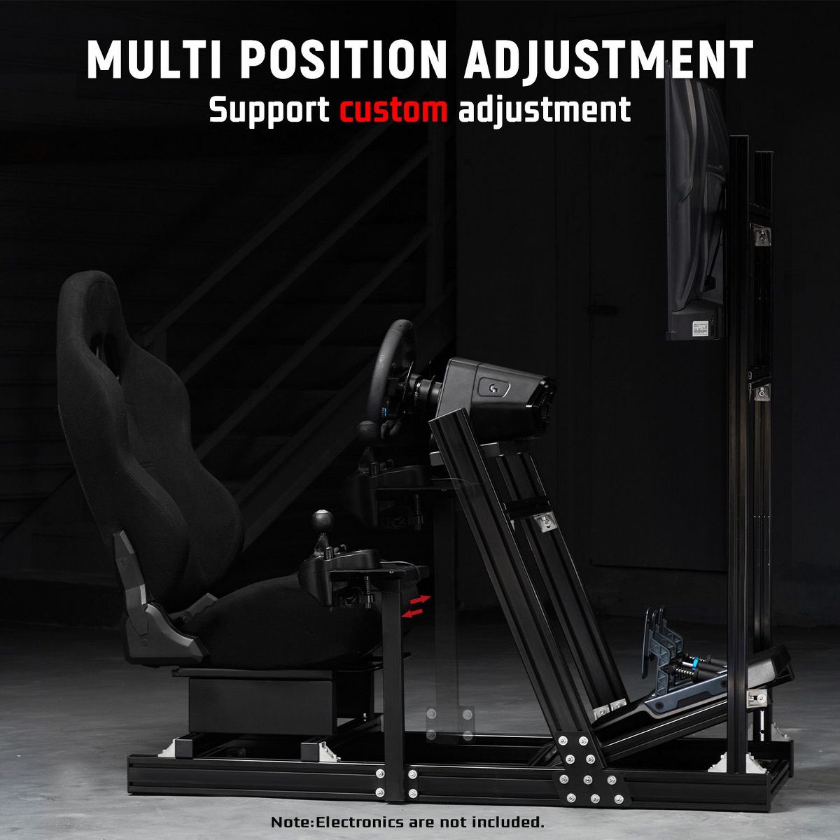Dardoo 4080 & 4040 Aluminum Racing Sim Cockpit with Monitor Stand & Black Seat,for Thrustmaster,Moza & Logitech.Not Include Wheel,Pedal,and Monitors