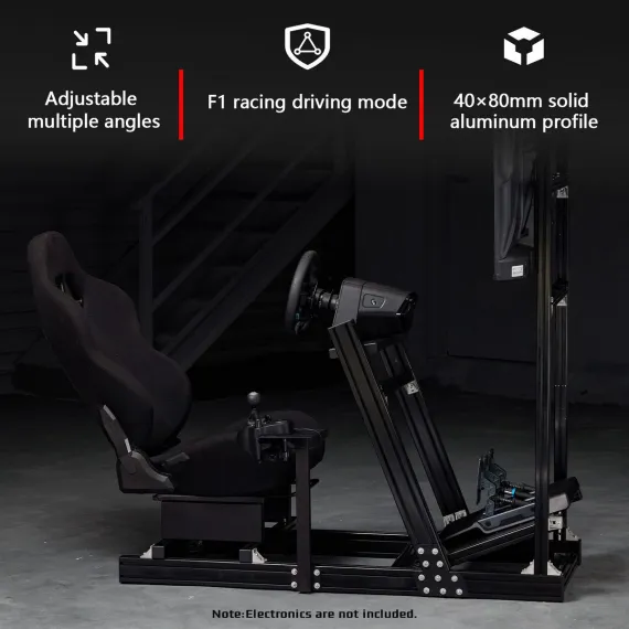 Dardoo 4080 & 4040 Aluminum Racing Sim Cockpit with Monitor Stand & Black Seat,for Thrustmaster,Moza & Logitech.Not Include Wheel,Pedal,and Monitors