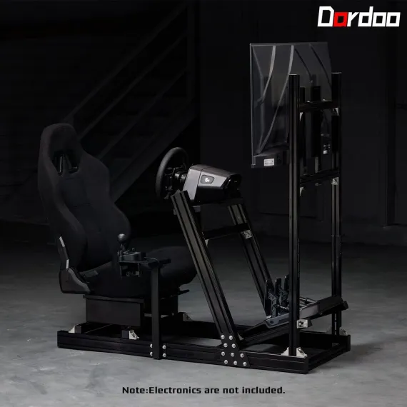 Dardoo racing sim cockpit is built on an ultra-stable 4080 aluminum frame, designed to handle direct-drive wheels without flex. The integrated, fully adjustable monitor bracket and highly customizable ergonomics allow every user to achieve their perfect sim-racing position, supported by a comfortable, durable seat.