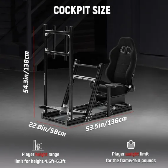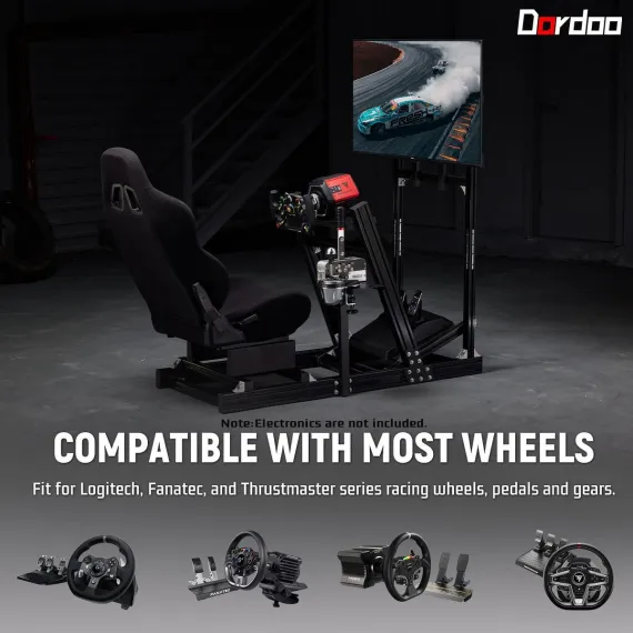 Dardoo aluminum racing cockpit ensures wide compatibility with all major racing gear brands and provides a platform for total customization, from the seat and wheel placement to the side of the shifter. This creates a truly personalized and immersive simulation environment.