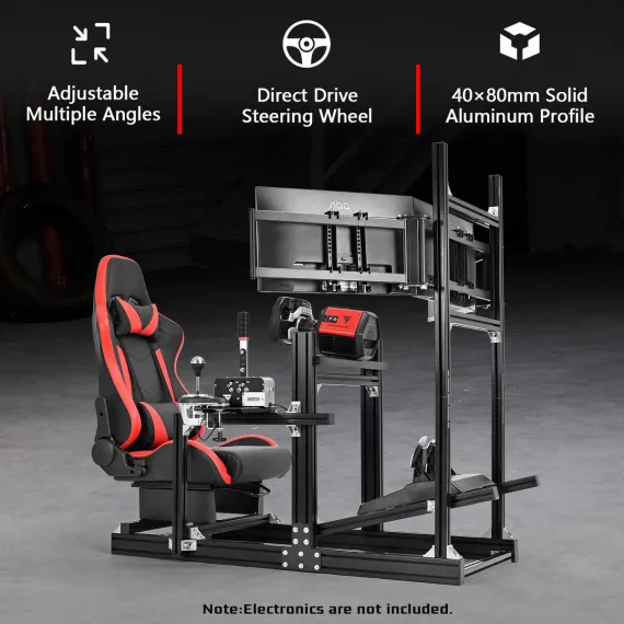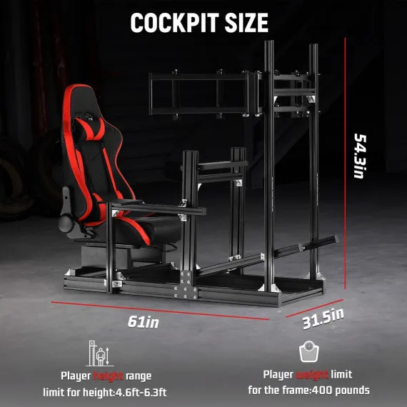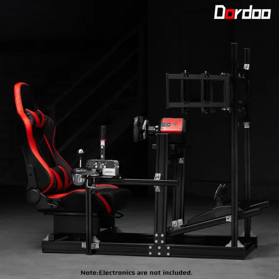 Dardoo 4080 T-profile Aluminium Racing Sim Cockpit with Triple Monitor Mount & Red Seat, for Logitech & Thrustmaster (No Electronics)