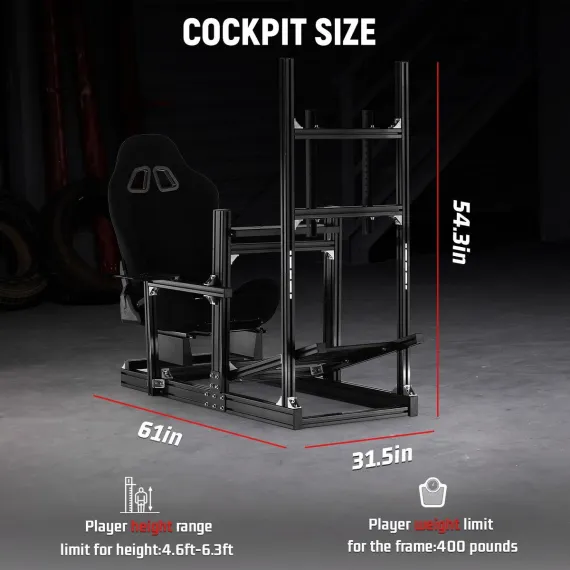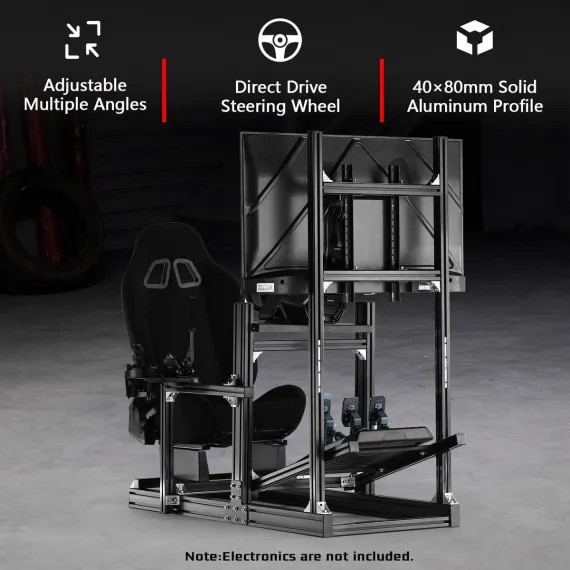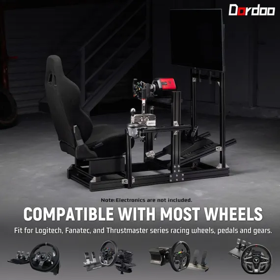 Dardoo 4080 T-type Aluminium Racing Sim Cockpit with Monitor Mount & Black Seat,Adjustable for Logitech & Thrustmaster(Wheel/Pedals Not Included)