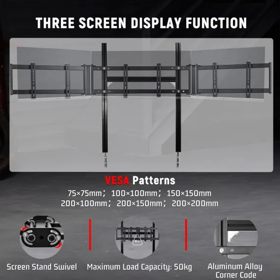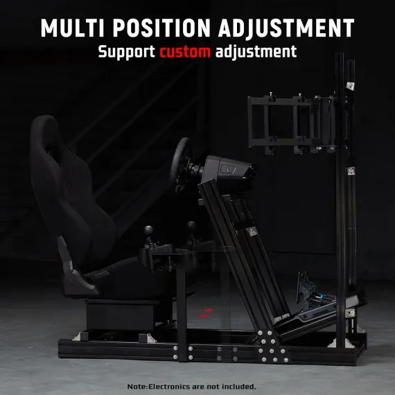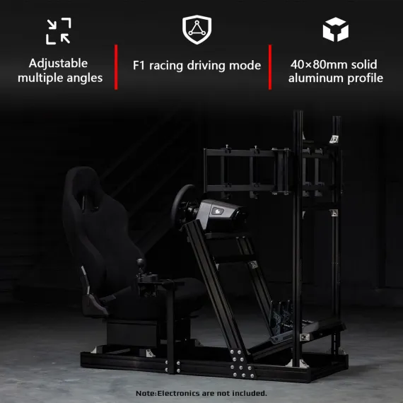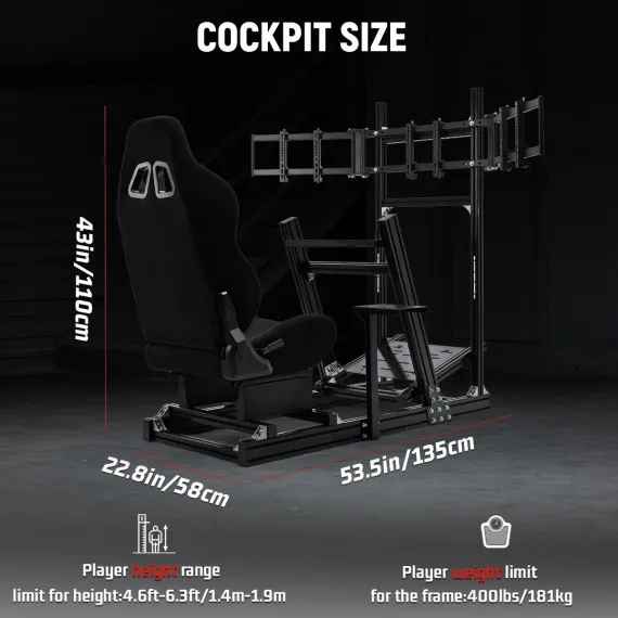 Dardoo 4080T Aluminum Sim Racing Cockpit with Triple Monitor Stand & Black Seat,Fit for Logitech,Thrustmaster,Fanatec.Wheel/Pedals Not Included
