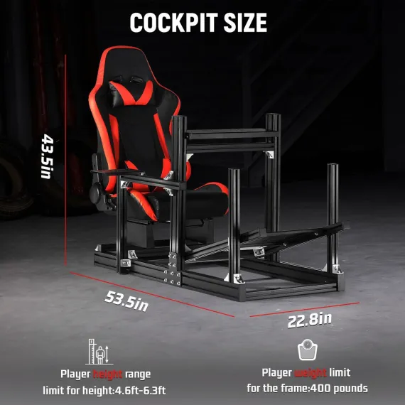 Dardoo 4080T-shaped F1 Alu Sim Racing Cockpit with Red Seat,for Logitech G29,Thrustmaster T300 & Fanatec.Not Include Wheel, Pedal