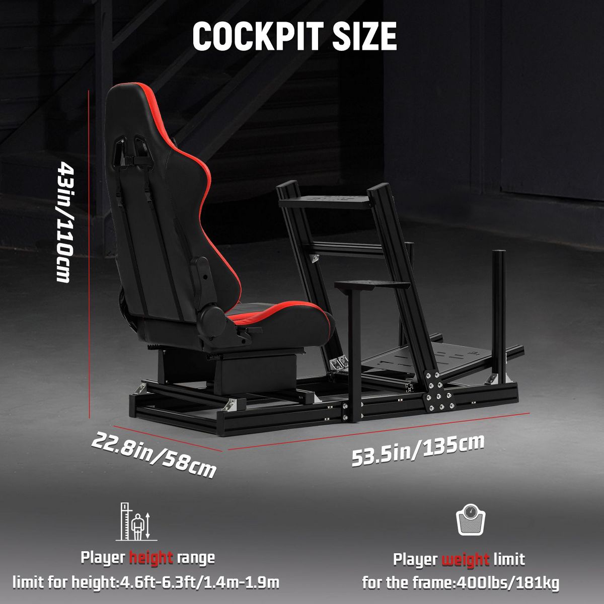 Dardoo Adjustable 4080 Aluminum Sim Racing Cockpit with Red Seat,for Logitech,Thrustmaster,Fanatec & Moza,Not Include Steering Wheel,Pedal,Handbrake