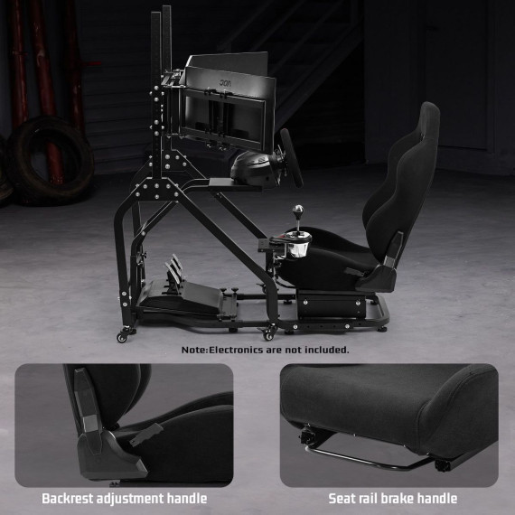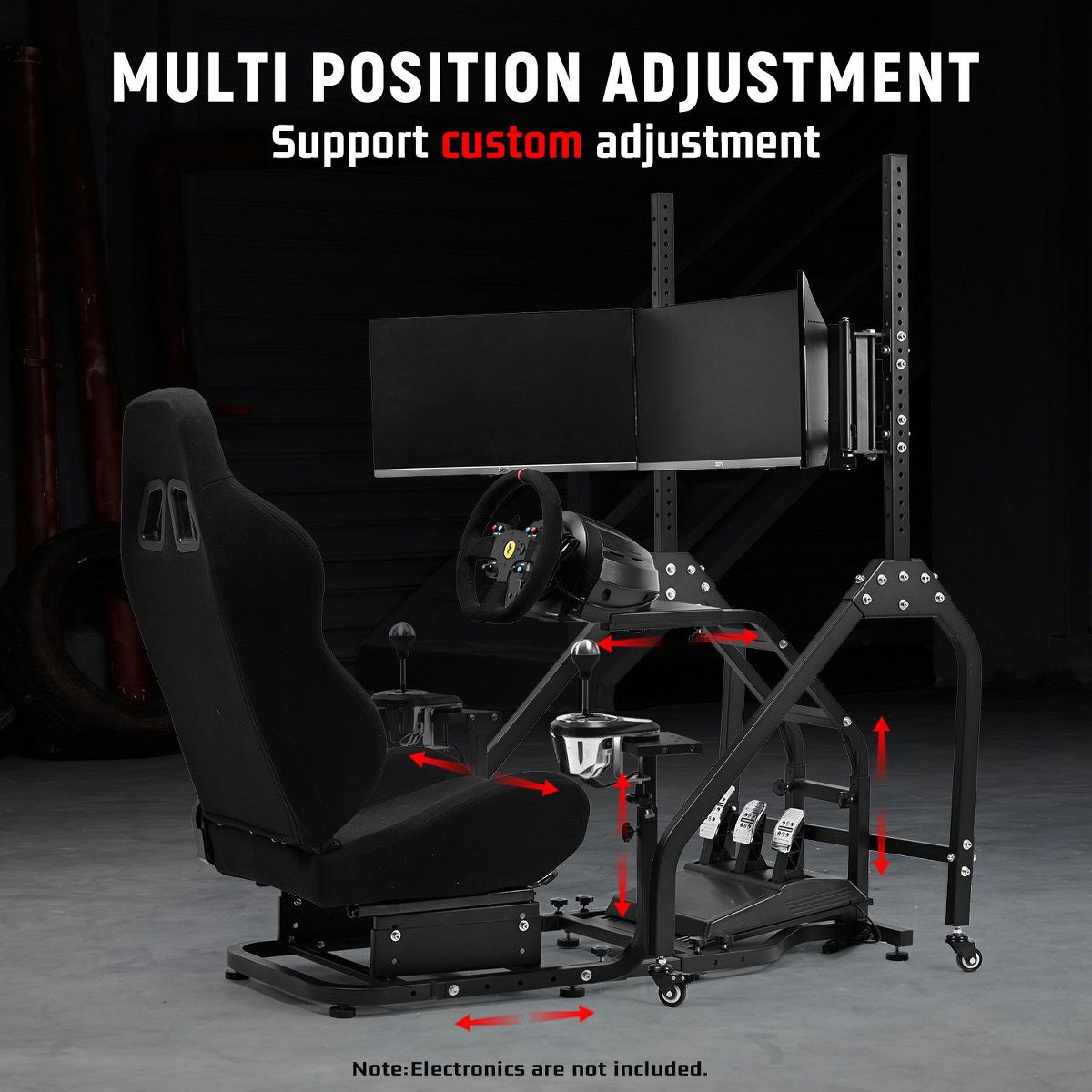Dardoo Adjustable Racing Sim Cockpit with Triple Monitor Stand & Ergonomic Seat | Compatible with Logitech/Thrustmaster | No Electronics
