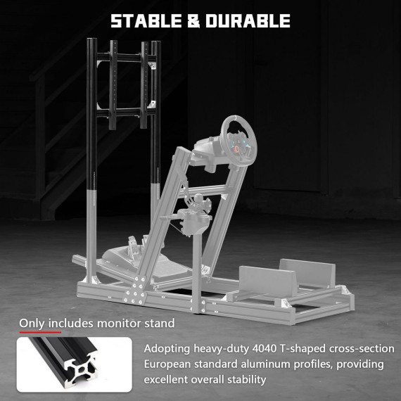 Dardoo Adjustable Single Monitor Stand for 4080 Aluminum Racing Sim Cockpit Supports 27-65in with Angle Adjustment for Immersive Gaming.
