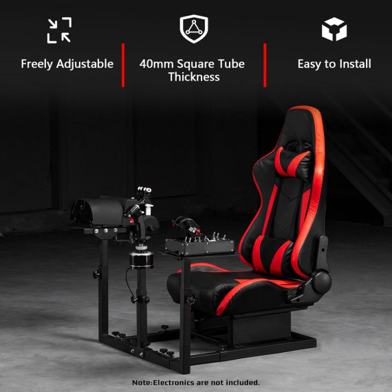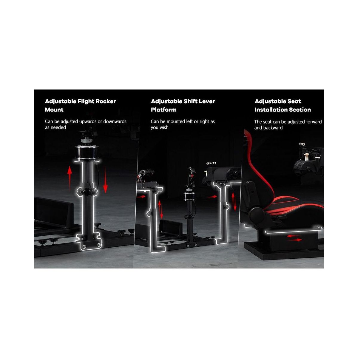 Dardoo flight sim cockpit maintains cross-platform compatibility through adjustable mounting solutions and universal interface panels, creating stable foundations for both flight and racing applications. Please note that control devices including throttle units, joysticks, and steering wheels are not included with the frame, allowing users to select their preferred compatible equipment.