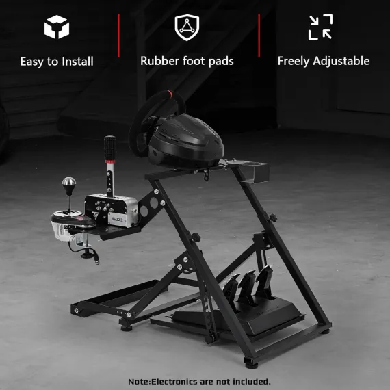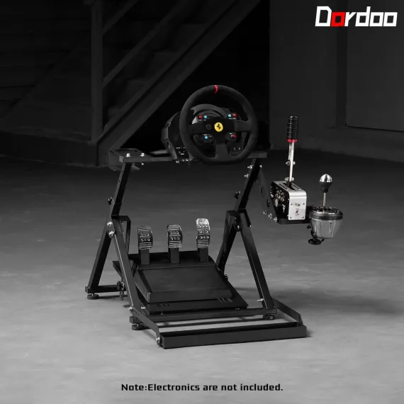 Dardoo racing wheel stand provides a highly customizable experience, allowing you to adjust the wheel height, pedal angle, and steering wheel position, while also offering interchangeable left/right mounting for the gear shifter and cup holder. Please be aware that the Dardoo stand is sold as a chassis only; all gaming peripherals such as the steering wheel, pedals, and shifter are not included.
