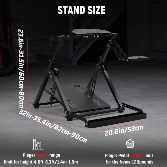 Dardoo Foldable Racing Wheel Stand with Seat Slot. Compatible with Logitech G29/G923, Thrustmaster T300, Fanatec. Wheel & Pedals Not Included