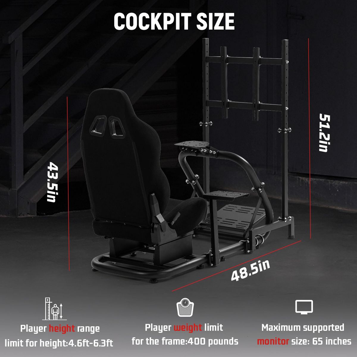Dardoo G27 Racing Simulator Cockpit with Black Seat & Monitor Mount Compatible with Logitech, Thrustmaster & Fanatec No Wheel/Pedals/TV