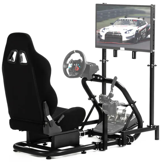 Dardoo G27 Racing Simulator Cockpit with Black Seat & Monitor Mount Compatible with Logitech, Thrustmaster & Fanatec No Wheel/Pedals/TV