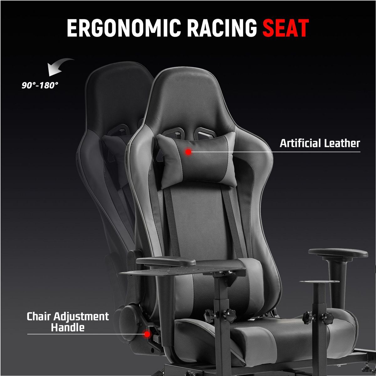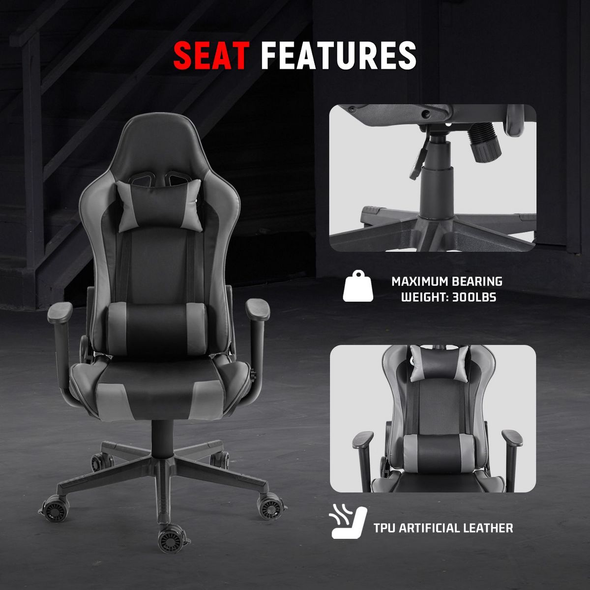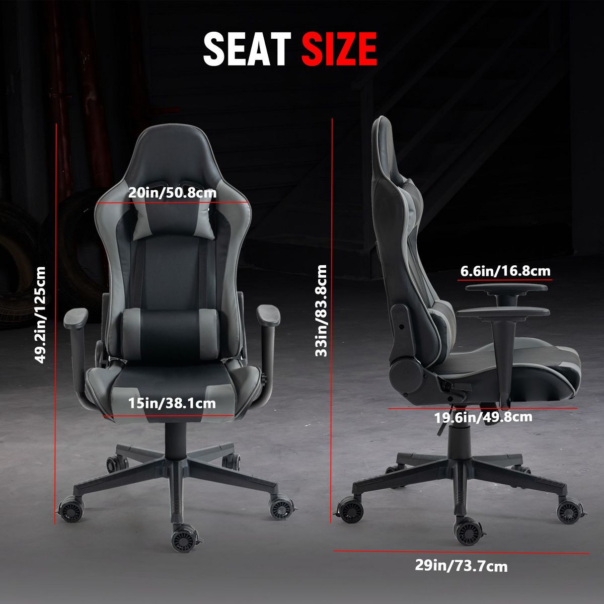 Dardoo Gray Gaming Or Office Chair Features Adjustable Height & Backrest Recline Ergonomic Support, Secure Locking Casters For Smooth Stable Use