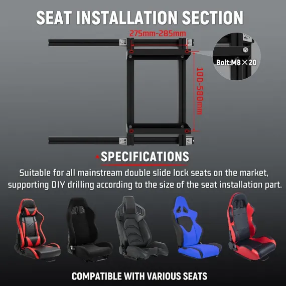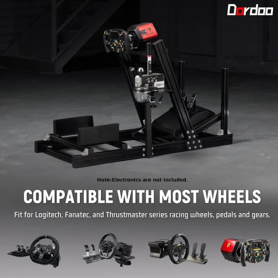 Dardoo racing wheel stand offers wide compatibility with wheels from Logitech, Thrustmaster, Fanatec, and PXN, along with support for DIY modifications. Please note that the Dardoo racing simulator cockpit bracket is sold as a standalone unit; the steering wheel, pedal shifter, handbrake, and seat are not included, enabling you to build your perfect custom racing setup.
