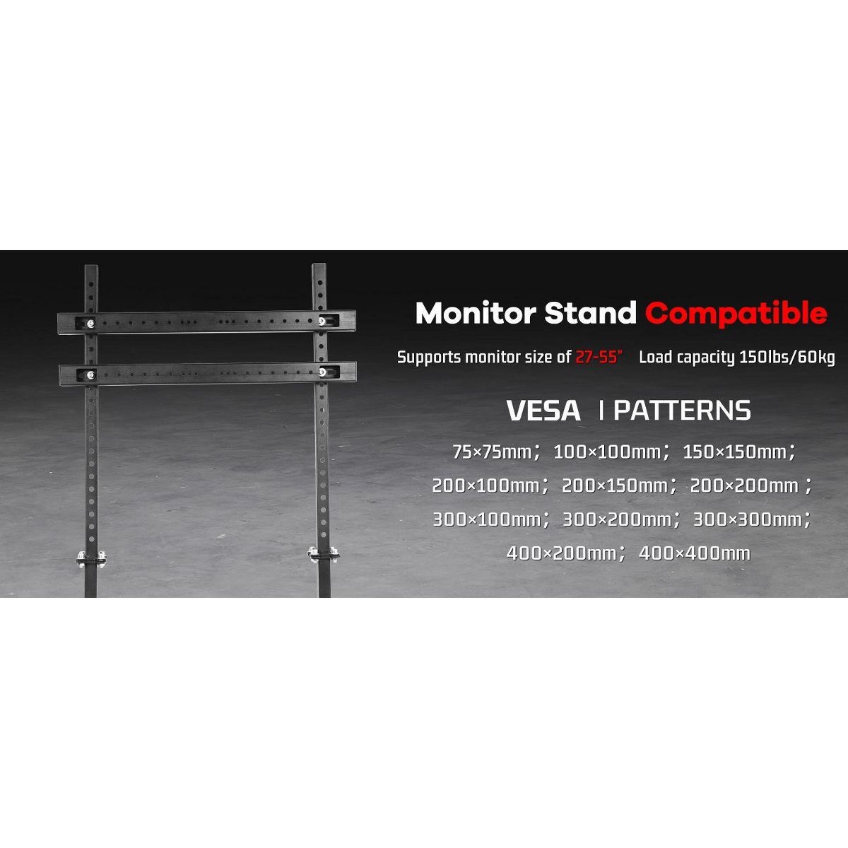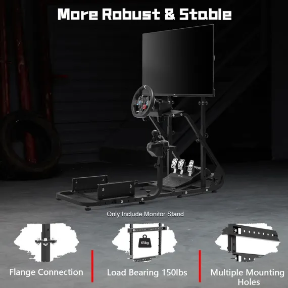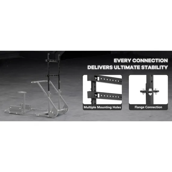 Dardoo offers a universal monitor bracket built with a robust combination of 25mm and 40mm square tubes to ensure a rock-solid and vibration-free display during use. It is designed for seamless compatibility with the Dardoo XBOX frame and other similarly sized cockpits, and it fully adjusts to fit a wide range of 27 to 55-inch monitors for an integrated racing experience.
