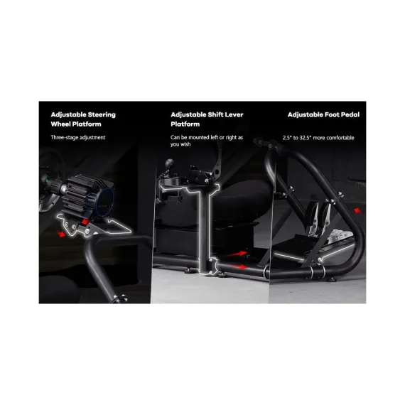 Dardoo racing sim rig enhances versatility through its multi-function control platform that simultaneously accommodates shifters and handbrakes via expanded mounting holes. With universal compatibility covering Logitech, Thrustmaster, PXN, and Fanatec ecosystems, plus precision adjustment systems for optimal ergonomics, Dardoo creates a professional-grade foundation that grows with your simulation needs.