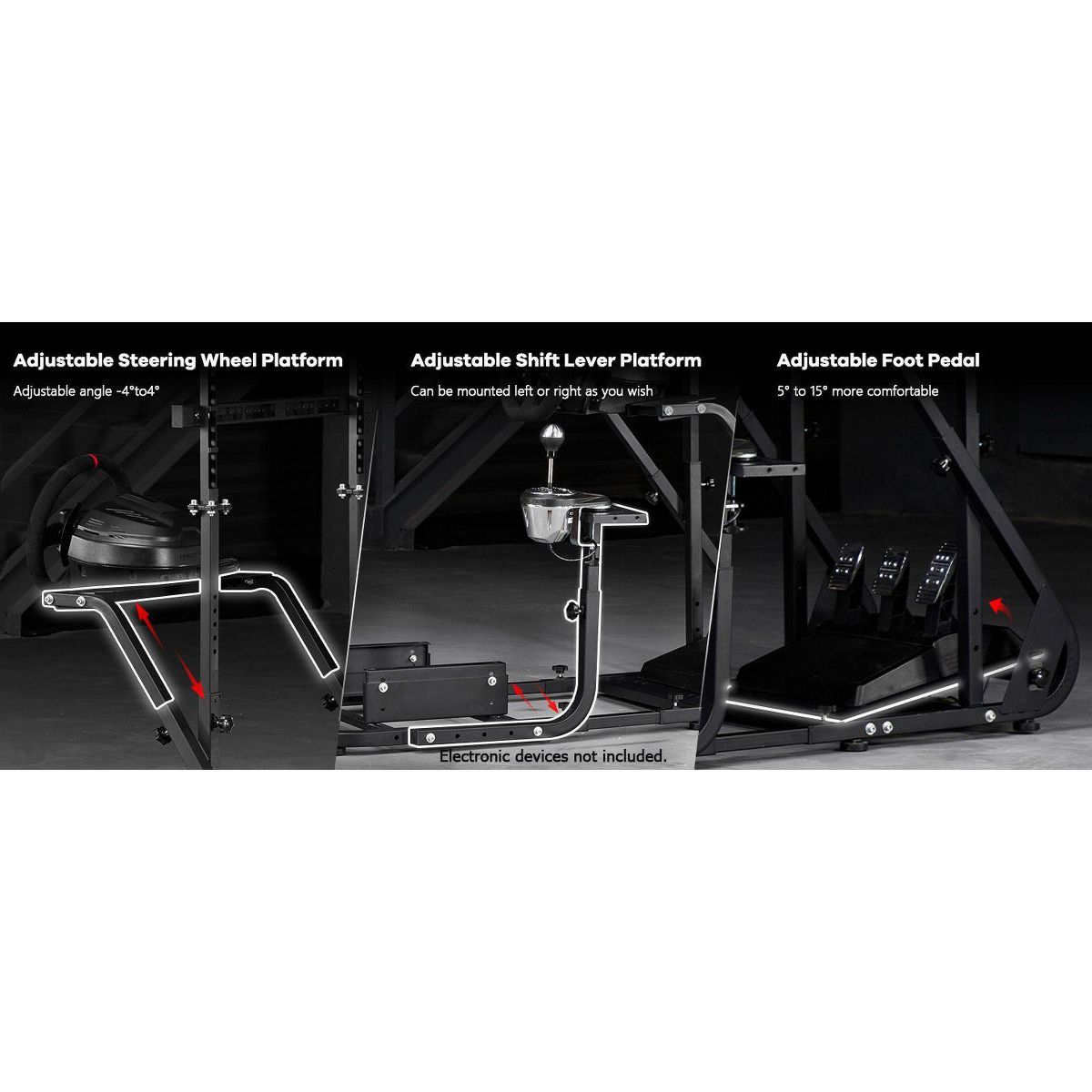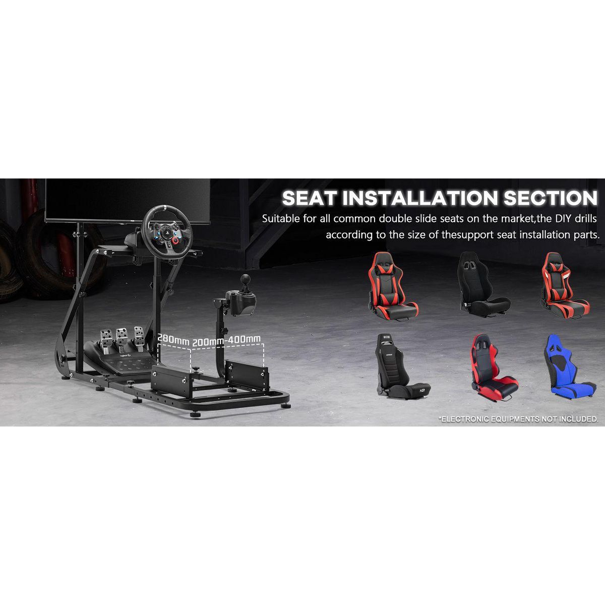 Dardoo designed this stand for universal use, ensuring compatibility with most major racing brands like Logitech, Fanatec, and Thrustmaster. Please be aware that the Dardoo gaming frame is sold separately and does not include the handbrake, pedals, seat, steering wheel, or shifter.