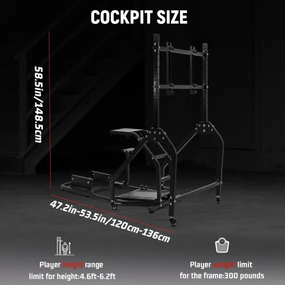 Dardoo racing simulator stand provides customizable ergonomic positioning through its fully adjustable framework, accommodating various user heights while maintaining industrial-grade stability. This versatile stand incorporates a mobile display solution with secure positioning and universal peripheral compatibility for comprehensive simulation experiences.