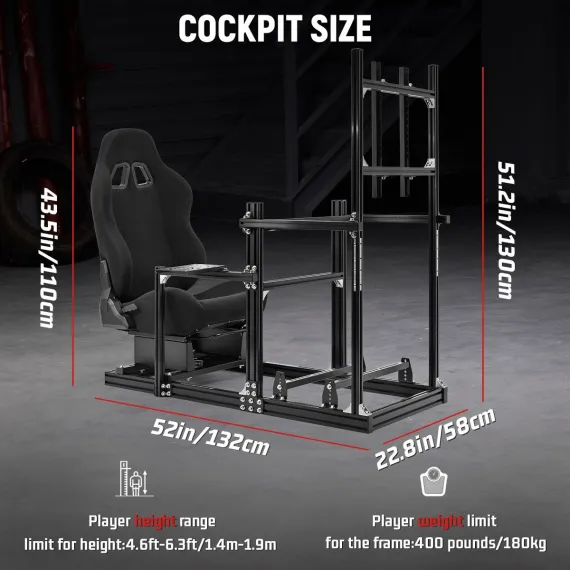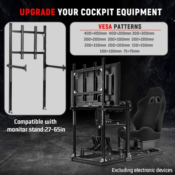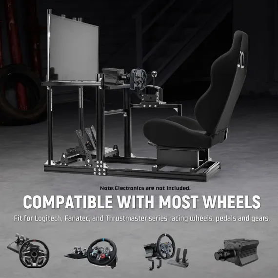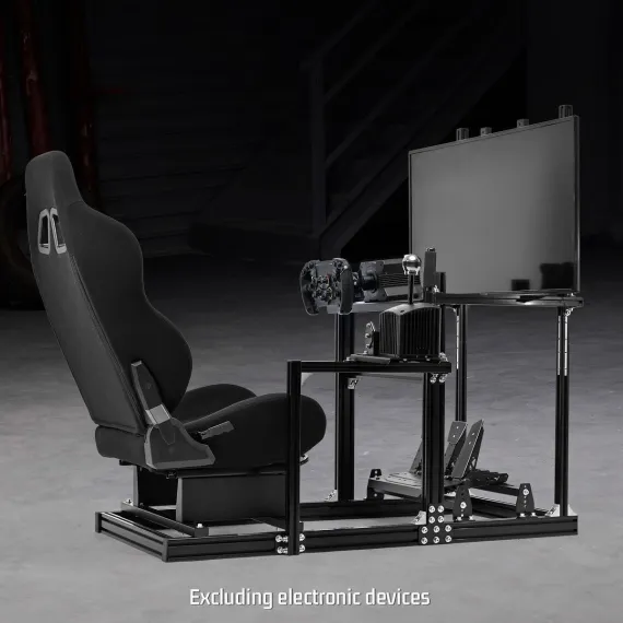 Dardoo Racing Sim Cockpit with Black Seat&Monitor Mount-3060 Aluminum Profile-Compatible with Logitech,Thrustmaster,Fanatec(Wheel/Pedal Not Included)