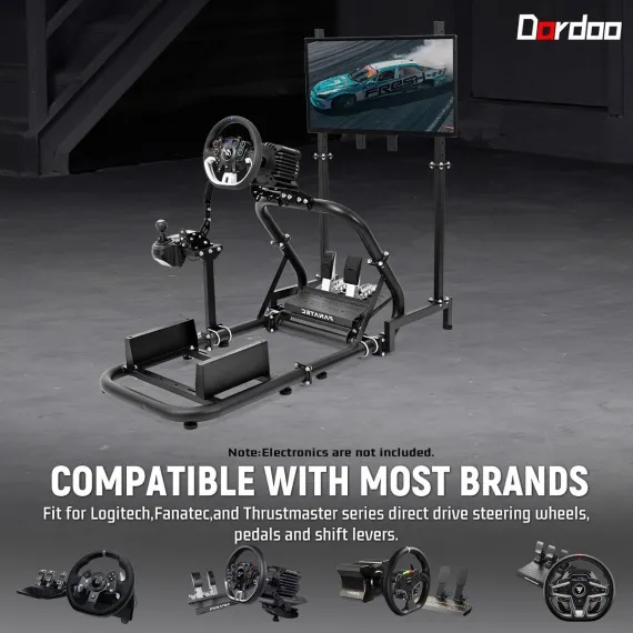 Dardoo Racing Sim Mount with Monitor Stand Professional Stand Compatible with Logitech G29, Thrustmaster T248 & Fanatec Seat/Wheel Not Included