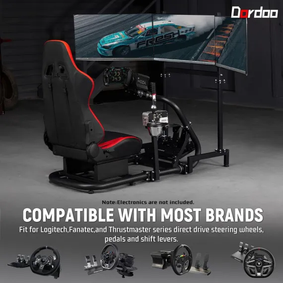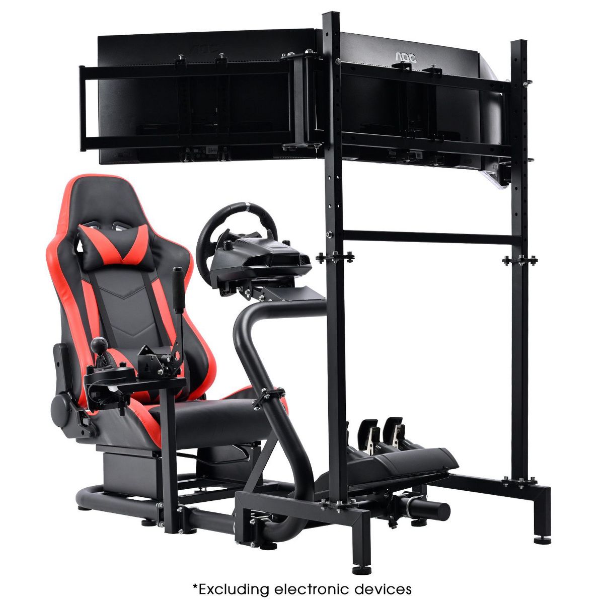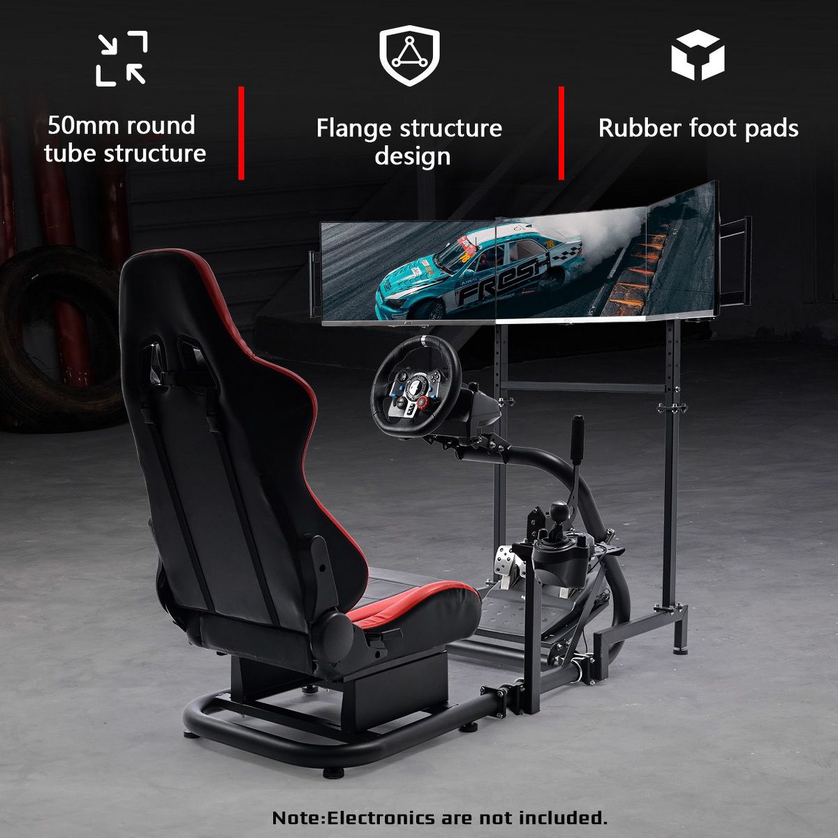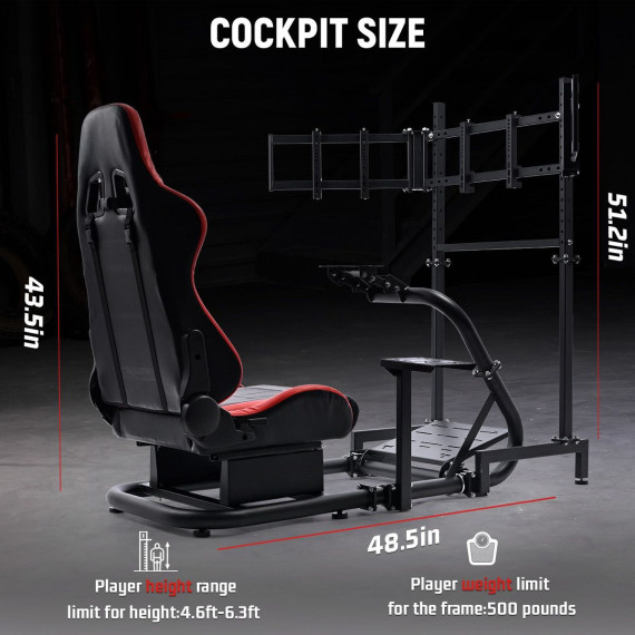 Dardoo Racing Simulation Cockpit With Adjustable Red Seat And Triple Monitor Stand Fits For Logitech G923 920 Thrustmaster T248 PS/XBox.