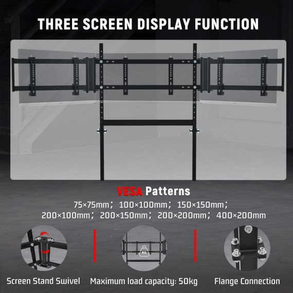Dardoo racing simulatior cockpit, red leather seats, adjustable seat back design, three screen display bracket can simultaneously install three displays, and the column and base are connected with four hole flanges for better stability and enhanced gaming experience.