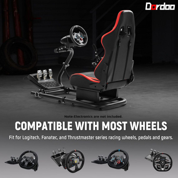Dardoo Racing Simulator Cockpit With Red Seat Fit Logitech G29 G920 Thrustmaster T300R, Not include Wheel Shifter and Pedal