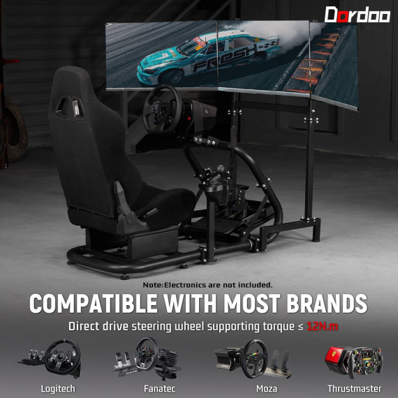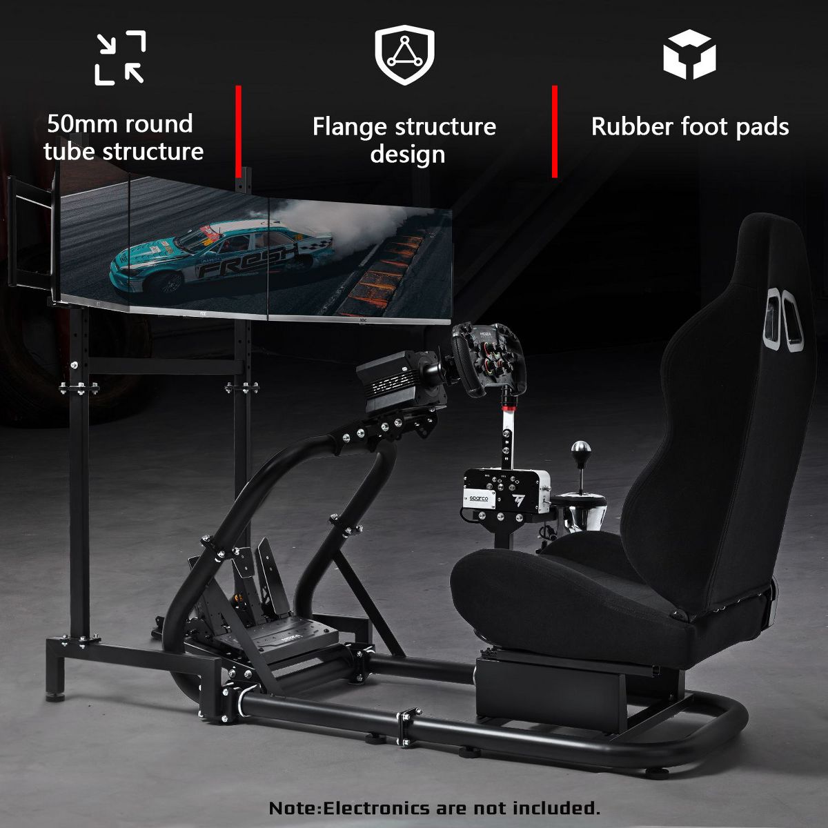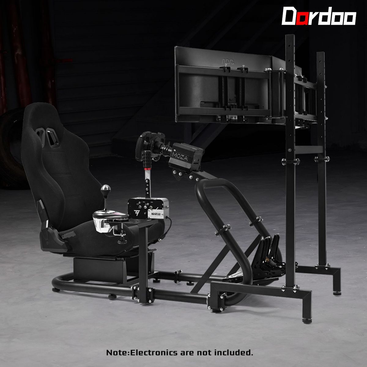 Dardoo Racing Simulator Cockpit with Triple Monitor Stand & Black Seat Fits Logitech, Thrustmaster & Fanatec No Wheel, Pedals or Handbrake