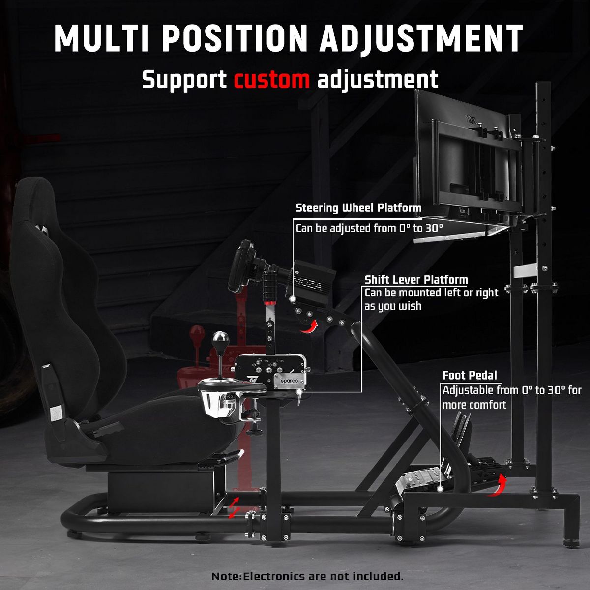 Dardoo cockpits deliver advanced compatibility with high-torque direct drive wheels and major brand ecosystems, combined with a personalized driving experience through dual-adjustable steering and pedal angle customization. The rigid 50mm steel frame with four-bolt flange connections ensures unshakable stability, while the included triple monitor stand enables an immersive visual setup for professional-level racing.