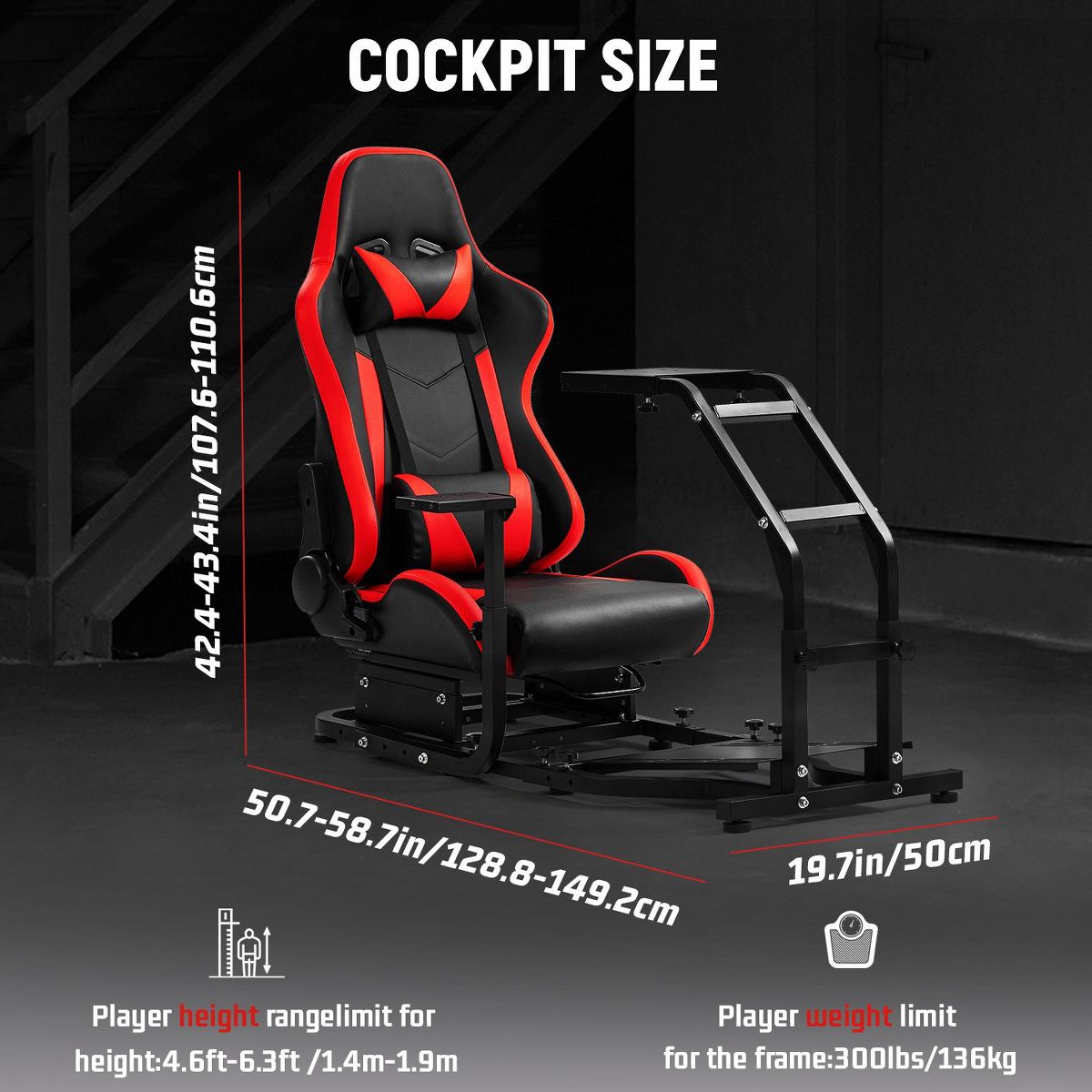 Dardoo Real Racing Simulator Cockpit Compact Stand with Red Seat Supports Compatible with Logitech, Thrustmaster, Fanatec & More
