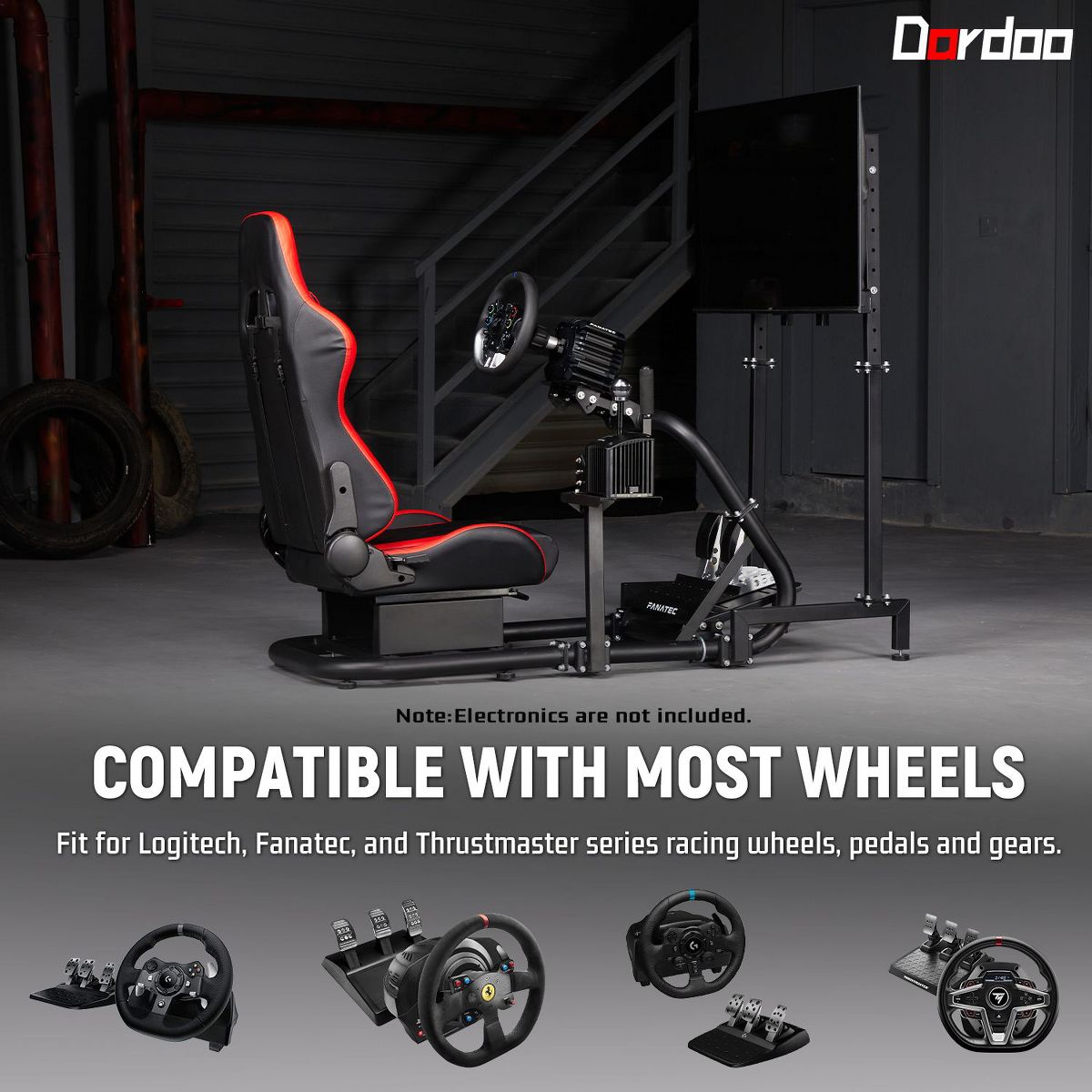 Dardoo Semi-open Racing Simulation Cockpit Equipped with Red Seat and Single Screen Monitor Stand,Compatible with Logitech G29 G920 G923 Thrustmaster