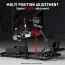 Dardoo racing simulator features a two-level steering wheel platform with height and angle adjustments, customizable pedal and shifter positions, and a semi-open 50mm large circular tube frame reinforced by a four-hole flange structure for superior stability, durability.