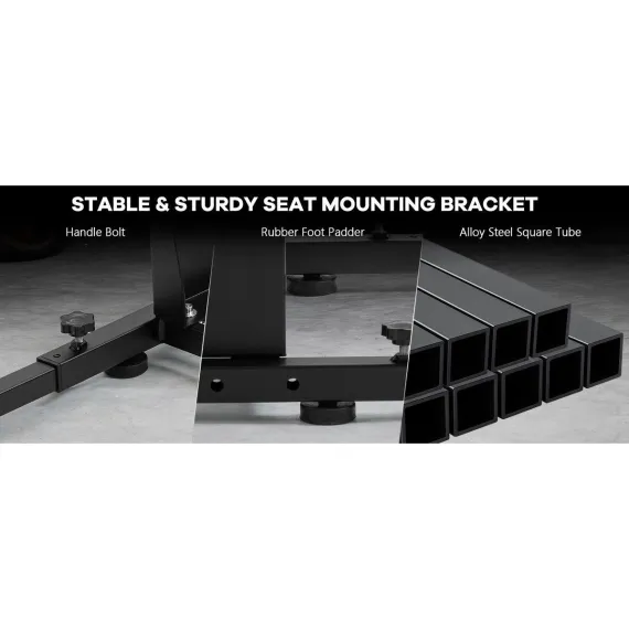 Dardoo seat bottom bracket and seat fixing plate adopt an integrated design, which has better strength and can be moved left and right in conjunction with the strip-shaped holes on the U-shaped plate below, adapting to more seat sizes. Equipped with circular rubber foot pads to prevent slipping during gameplay.