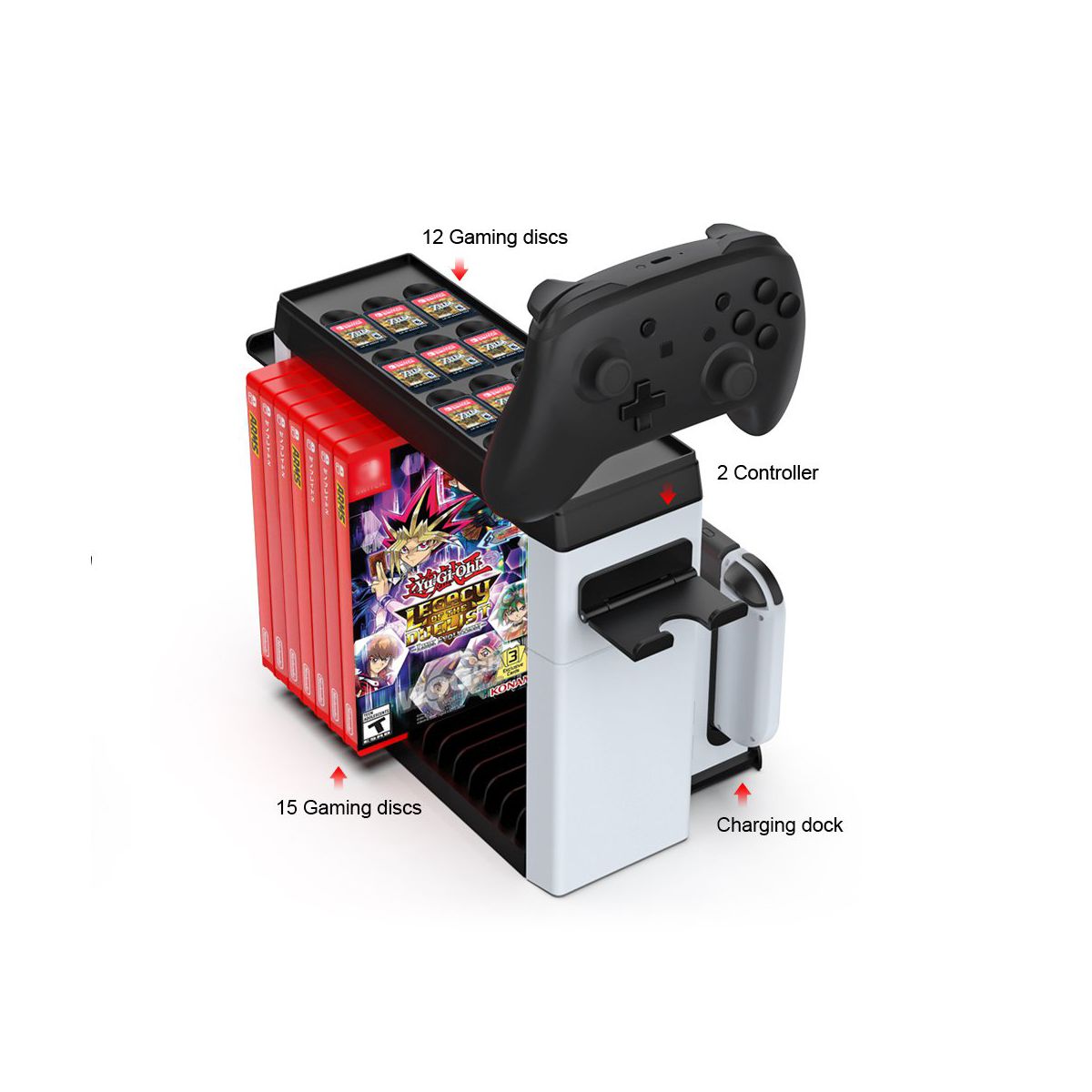 - Low standby power consumption, power saving and environmental protection; The storage rack is made of ABS material, which can store 27 game cards. Store the Switch charging stand and the console;