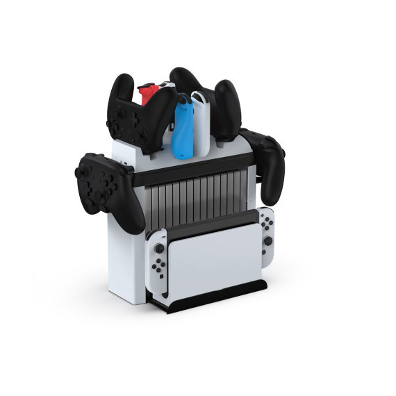The DOBE TNS-2113 is a multifunctional organizer and charging dock designed specifically for Nintendo Switch and Switch OLED systems. It can charge up to 4 Joy-Cons and 2 original Switch Pro controllers simultaneously, keeping your gaming gear powered and ready. With integrated storage for games and accessories, it helps declutter your setup while ensuring everything stays organized and within reach.