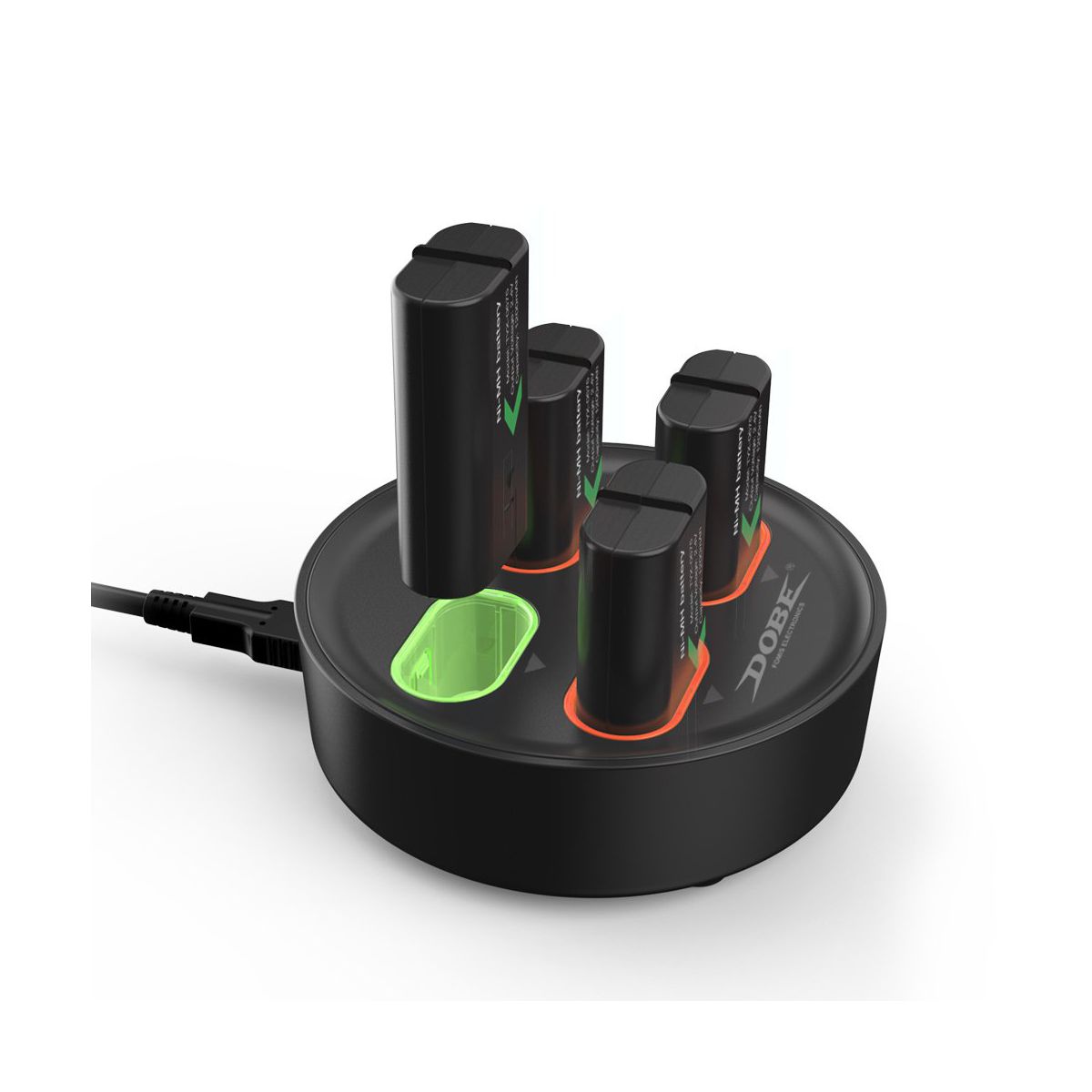 The DOBE TYX-0645S 4-in-1 battery pack charging dock is a versatile and convenient solution for Xbox gamers, compatible with X-ONE and X-Series controllers. It allows you to charge up to four battery packs simultaneously, ensuring your controllers are always powered and ready. The compact design saves space, while LED indicators provide clear charging status for each battery pack.